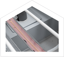 拥有拉链生产的全部工序,包括:织带、成型、缝合、染色、预整、后加工、成品条装等。